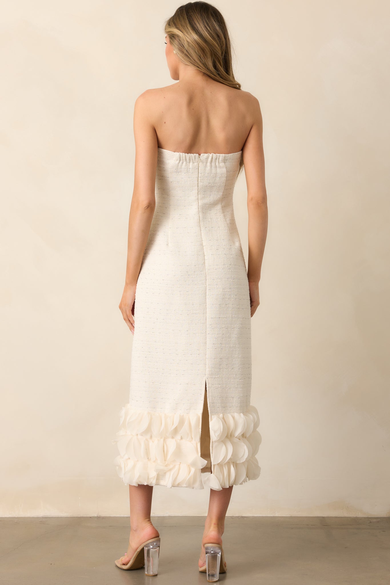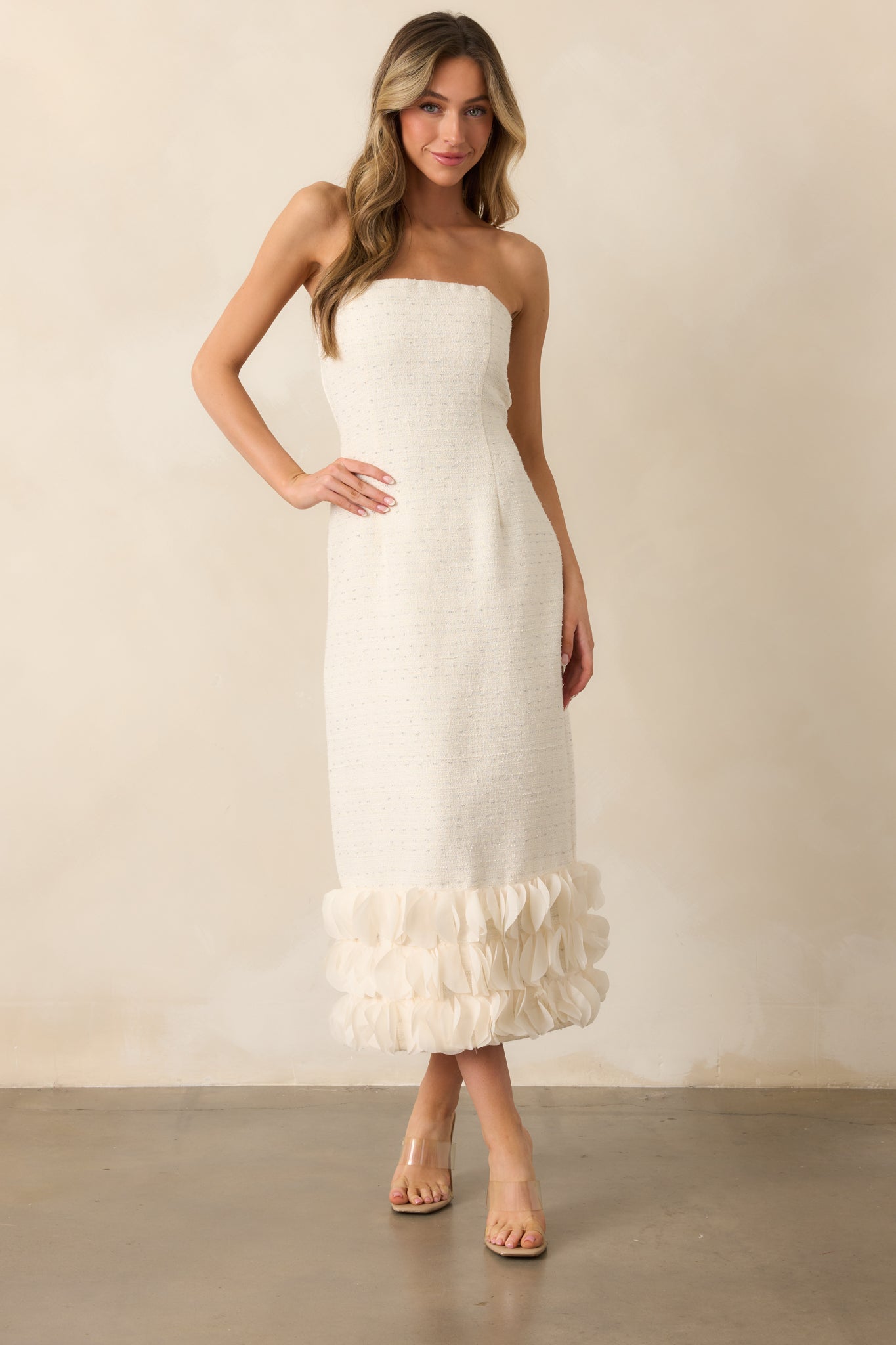 Caught In The Moment Ivory Tweed Strapless Midi Dress