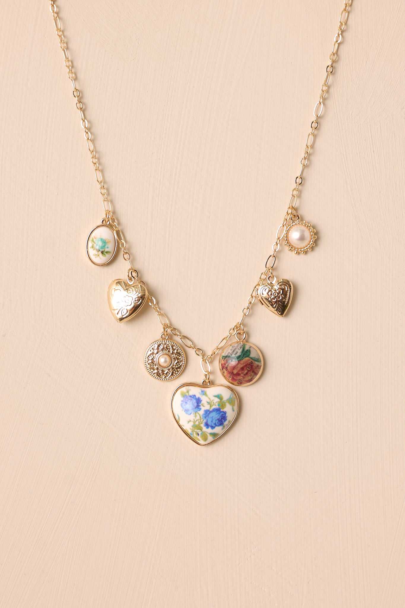 Shine bright with the Debutante Of The Season Gold Multi Charm Necklace. This elegant piece is perfect for special events or milestone celebrations. Its delicate charms add a touch of sophistication, making you feel like the belle of any ball. Ideal for those moments when you want to make a memorable entrance. This necklace features a variety of floral charms/lockets evenly placed along the gold chain, and a lobster claw clasp.