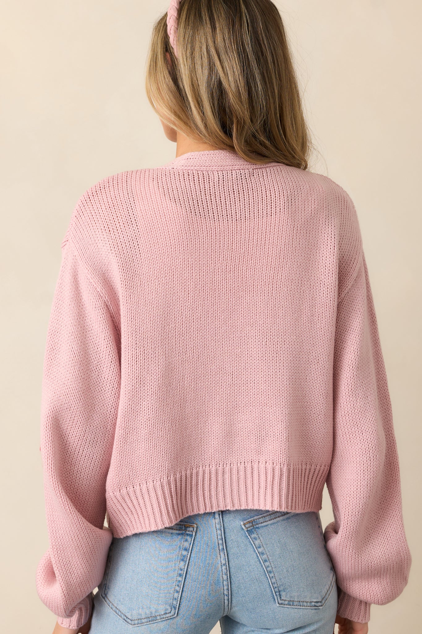 Indulge in the sweet and cozy embrace of our Strawberry Kiss Light Pink Knit Cardigan. Its soft knit material will keep you warm and stylish, while the delicate light pink color adds a touch of femininity to any outfit. Perfect for strawberry season, this cardigan is a must-have for any fashion-forward individual! This light pink cardigan features a v-neckline, pink buttons, strawberry graphics and long sleeves.