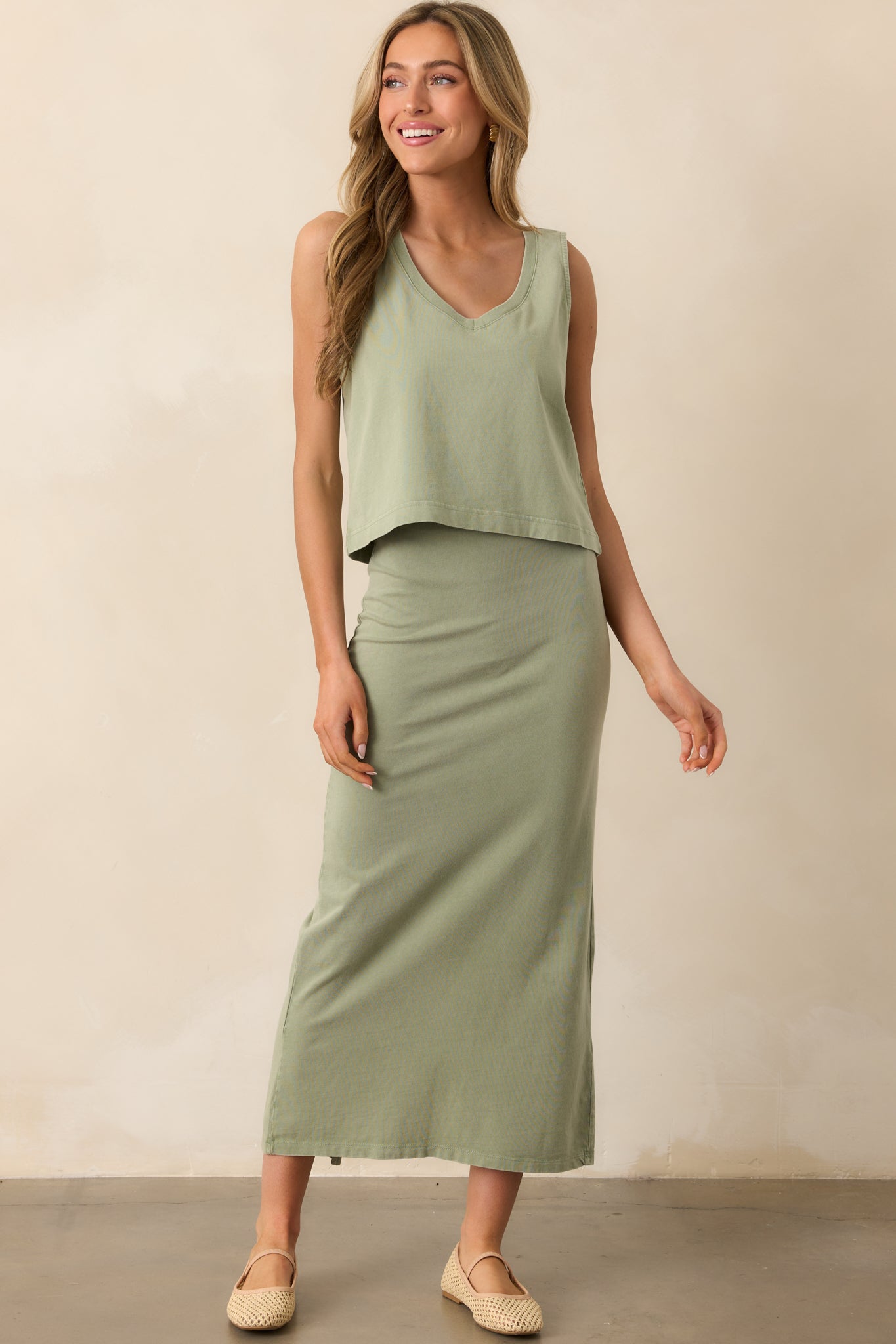 Infuse your summer wardrobe with some laid-back charm with the Z Supply Avocado Green Sloane V-Neck Tank. Crafted from 100% cotton, this tank features a playful neckline and a refreshing Avocado color. Perfect for any casual occasion, stay cool and stylish all season long with this comfortable tank. This green tank features a v-neckline, a sleeveless design, and a slightly cropped hemline.